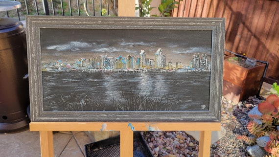 Night San Diego Downtown View Framed Painting On Canvas Etsy